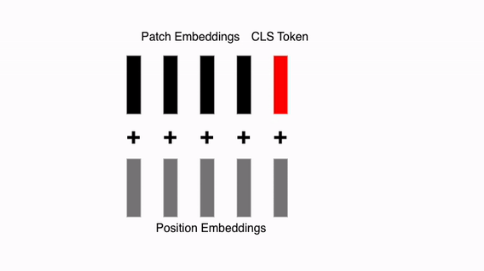 ViT ๋ชจ๋ธ์ [CLS] ํ ํฐ์ ์ด๋ฏธ์ง ํจ์น ์๋ฒ ๋ฉ ์ํ์ค์ ๊ฐ์ฅ ์์ ์ฐ๊ฒฐ(Concatenate)ํฉ๋๋ค.