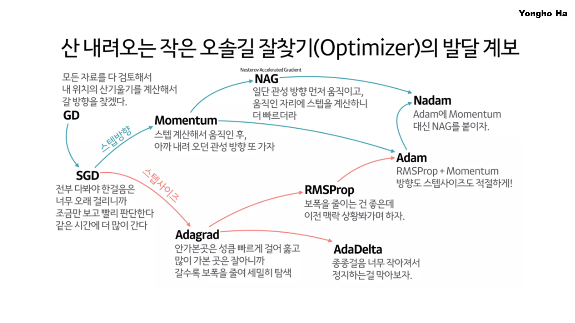 ์ด๊ธฐ Gradient Descent ๋ฐฉ์์์ ์ถ๋ฐํ์ฌ, ๋ ํจ์จ์ ์ธ ํ์ต๊ณผ ์์ ์ ์ธ ์๋ ด์ ์ํด ๋ค์ํ ๋ฐฉ๋ฒ๋ค์ด ๊ฐ๋ฐ๋์์ต๋๋ค.