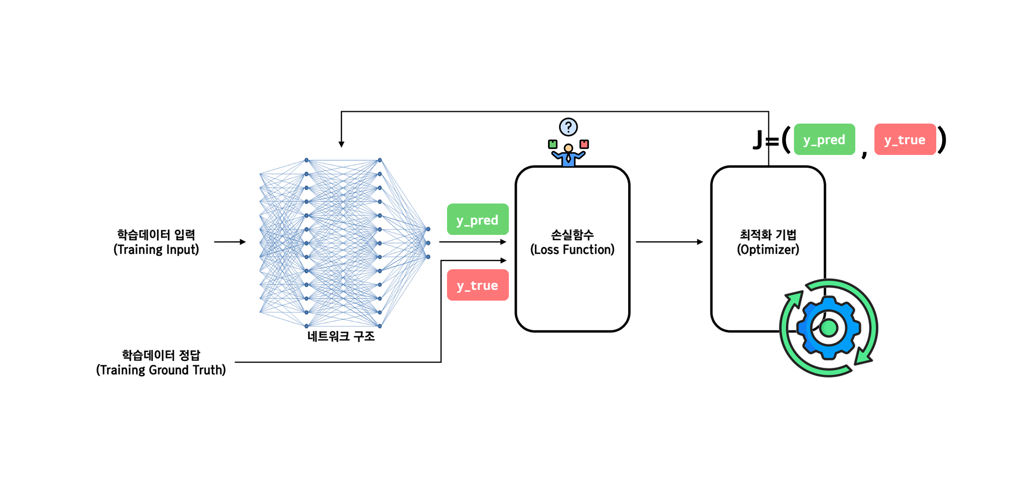 - ๋ชจ๋ธ์ด ๋ ๋์ ์์ธก์ ์ํํ๋๋ก ๊ฐ์ค์น๋ฅผ ์กฐ์