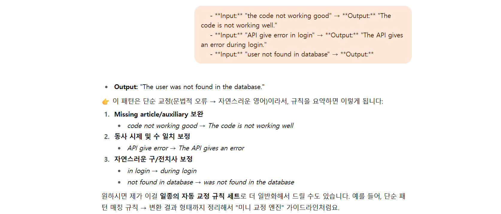 - AI๊ฐ ์์ฒด ๊ฒ์ฆ์ ํ๊ฑฐ๋ ์๋์ผ๋ก ํ์ธํ ๊ฒ๋ค์ ๋์ดํ ์ ์์ต๋๋ค.