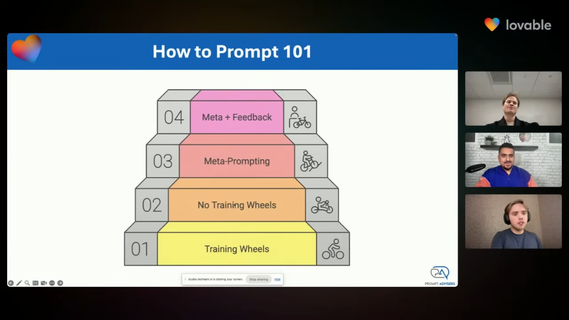 ๊ธฐ๋ณธ์ ์ธ CLEAR ์์น๋ถํฐ few-shot ์์์ ๋ฉํ ํ๋กฌํํ ๊ฐ์ ๊ณ ๊ธ ์ ๋ต๊น์ง, ์ด๋ฌํ ๊ธฐ๋ฒ๋ค์ AI๋ก๋ถํฐ ์ ํํ ํ์ํ ๊ฒ์ ์ป์ ์ ์๋๋ก - ๊ทธ ์ด์๋ ๊ทธ ์ดํ๋ ์๋ - ํ์ ์ค์ด์ค๋๋ค. ์์ฒญ์ ๊ตฌ์กฐํํ๊ณ , ์ปจํ ์คํธ๋ฅผ ์ ๊ณตํ๊ณ , ํ๊ฐ๊ณผ ๊ฐ์ ํจ์ ์ ํผํ๊ณ , Lovable ํนํ ๊ธฐ๋ฅ๋ค(Knowledge Base, Chat mode ๋ฑ)์ ํ์ฉํ์ฌ ์ํฌํ๋ก์ฐ๋ฅผ ๊ฐ์ํํ๋ ๋ฐฉ๋ฒ์ ๋ฐฐ์ ์ต๋๋ค.