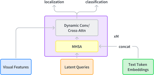 Image cross-attention๊ณผ Text cross-attention์ ์์ฐจ์ ์ผ๋ก ํ์ฉํ์ฌ ์ด๋ฏธ์ง์ ํ ์คํธ ํน์ง์ ์ตํฉํ๋ Grounding DINO ์ ๊ทผ๋ฒ๊ณผ ๋ฌ๋ฆฌ, vision-language fusion ๊ณผ์ ์ ๋จ์ํํฉ๋๋ค.
