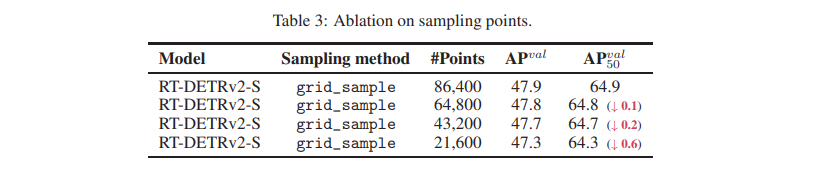 grid_sample operator์ ์ด sampling point ์์ ๋ํ ablation ์ฐ๊ตฌ๋ฅผ ์ํํ์ต๋๋ค.