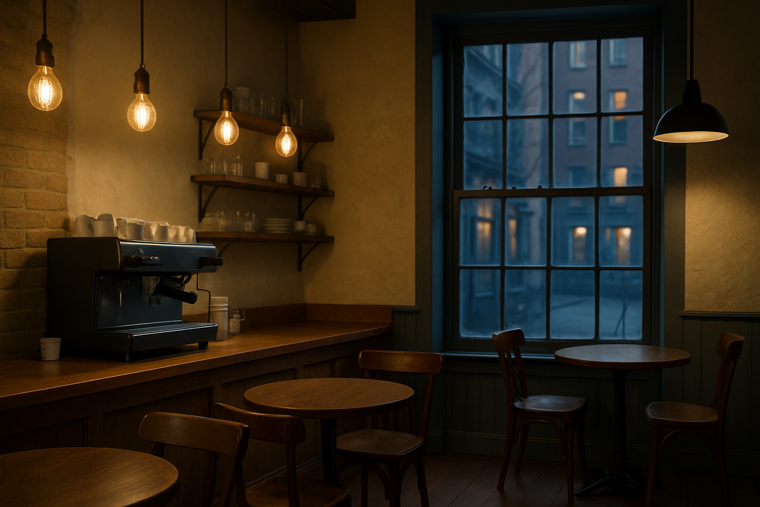 evoke vintage intimacy. Warm Kodak-inspired grade; light halation on bulbs;