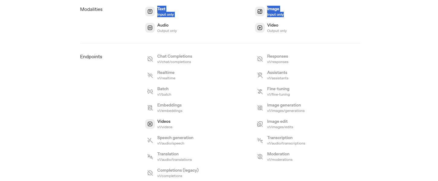 Modality & Endpoint - https://platform.openai.com/docs/models/sora-2