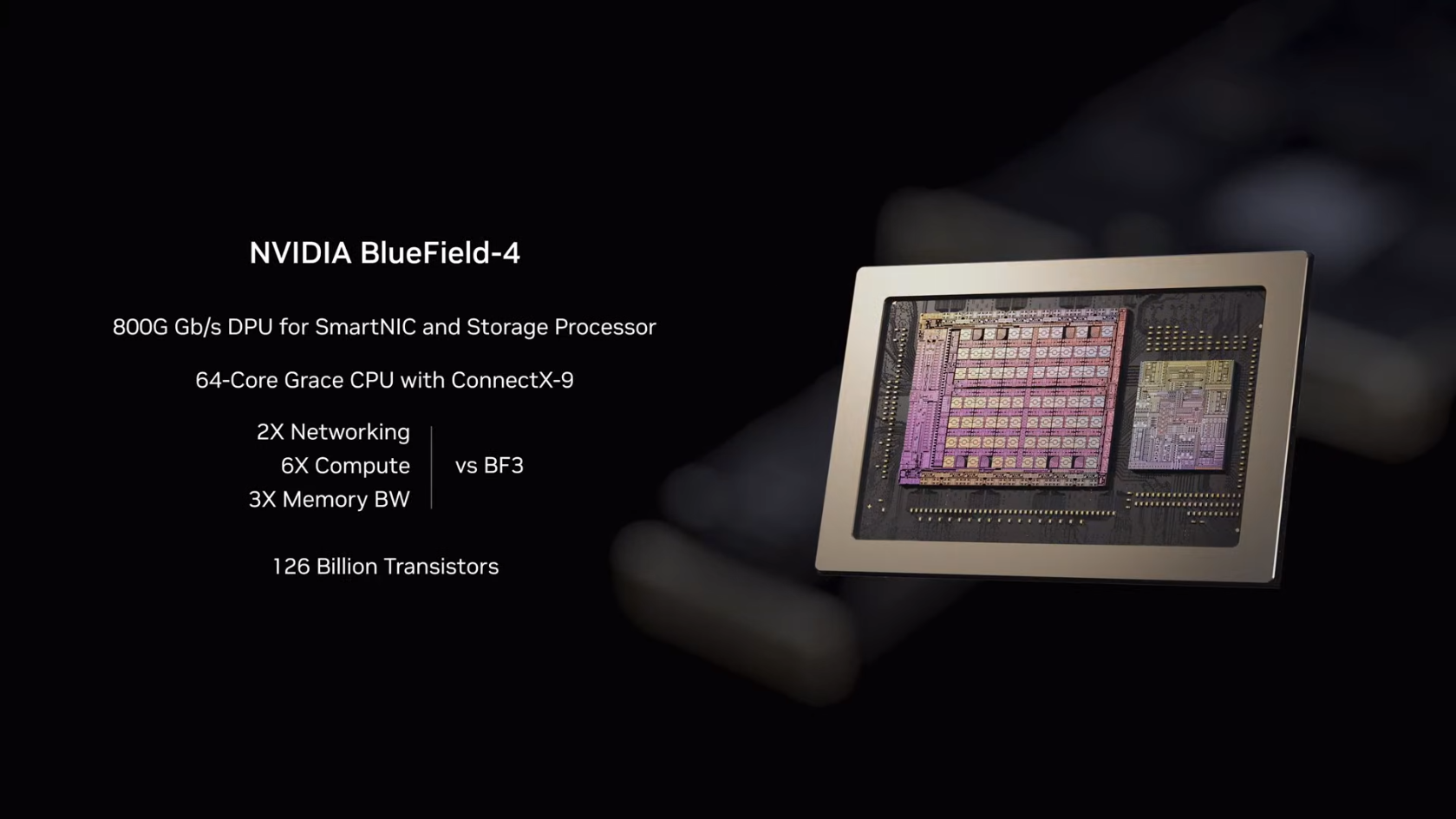 - Compute Tray: Bluefield-4 DPU 1๊ฐ + ConnectX-9 NIC 8๊ฐ + Vera CPU 2๊ฐ + Rubin GPU 4๊ฐ