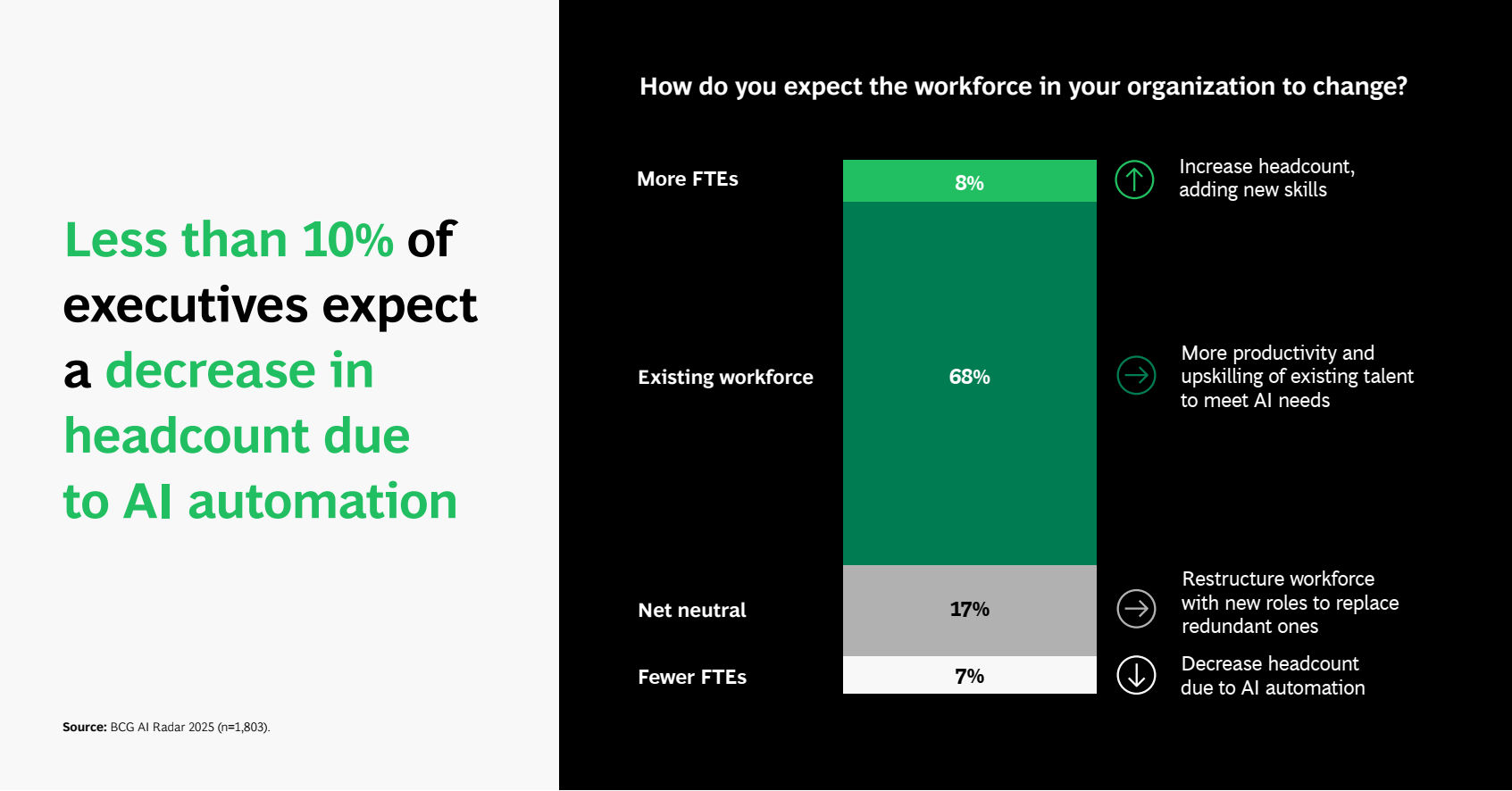 - 68%๋ AI๊ฐ ๊ธฐ์กด ์ธ๋ ฅ์ ์์ฐ์ฑ ํฅ์๊ณผ ์ญ๋ ์ ์คํฌ๋ง์ผ๋ก ์ด์ด์ง ๊ฒ์ด๋ผ๊ณ ๋ด ๋๋ค.
