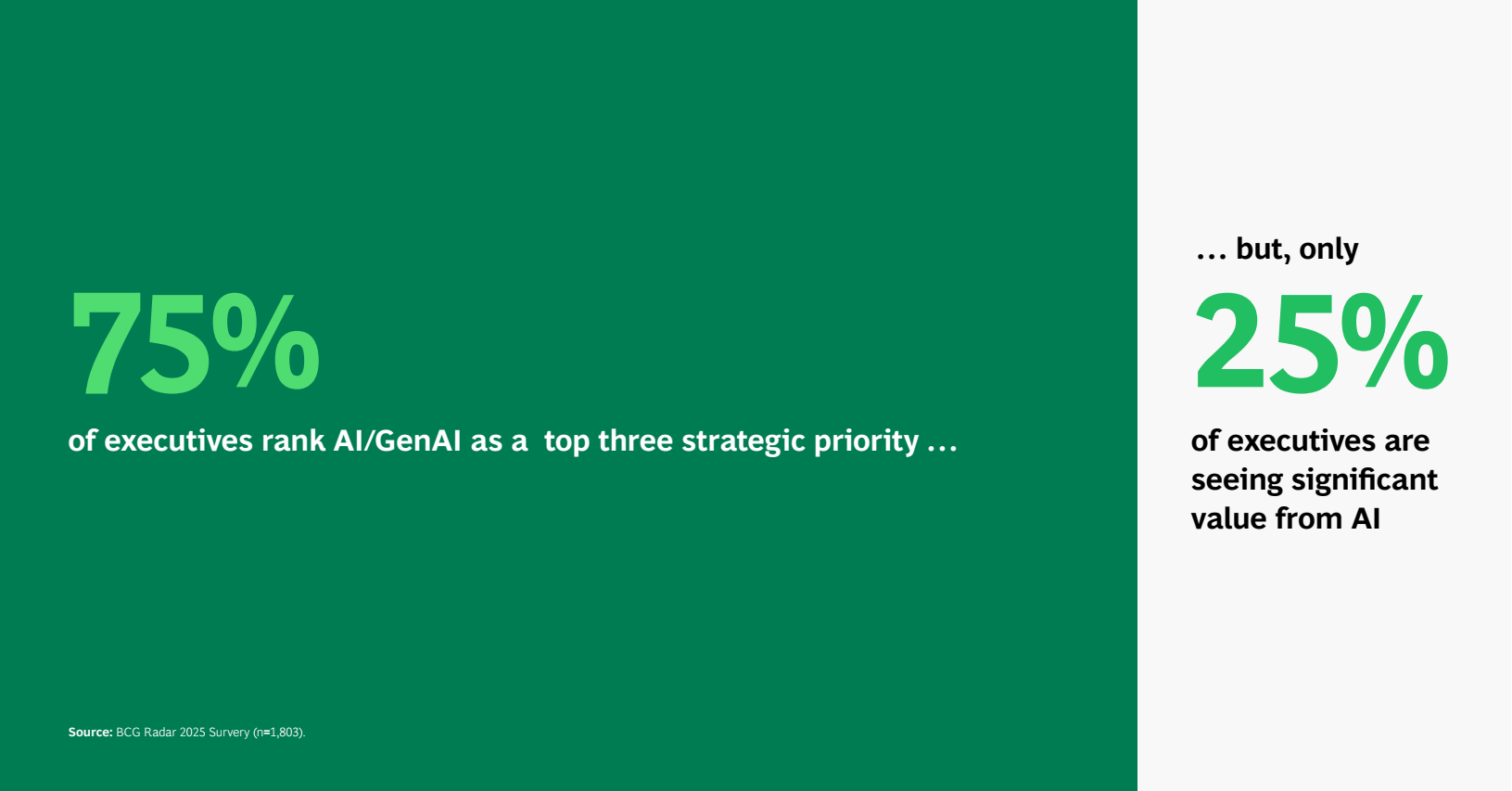 BCG AI Radar 2025: AI Impact Gap ํด์๋ฅผ ์ํ ์ ๋ต ๋ณด๊ณ ์