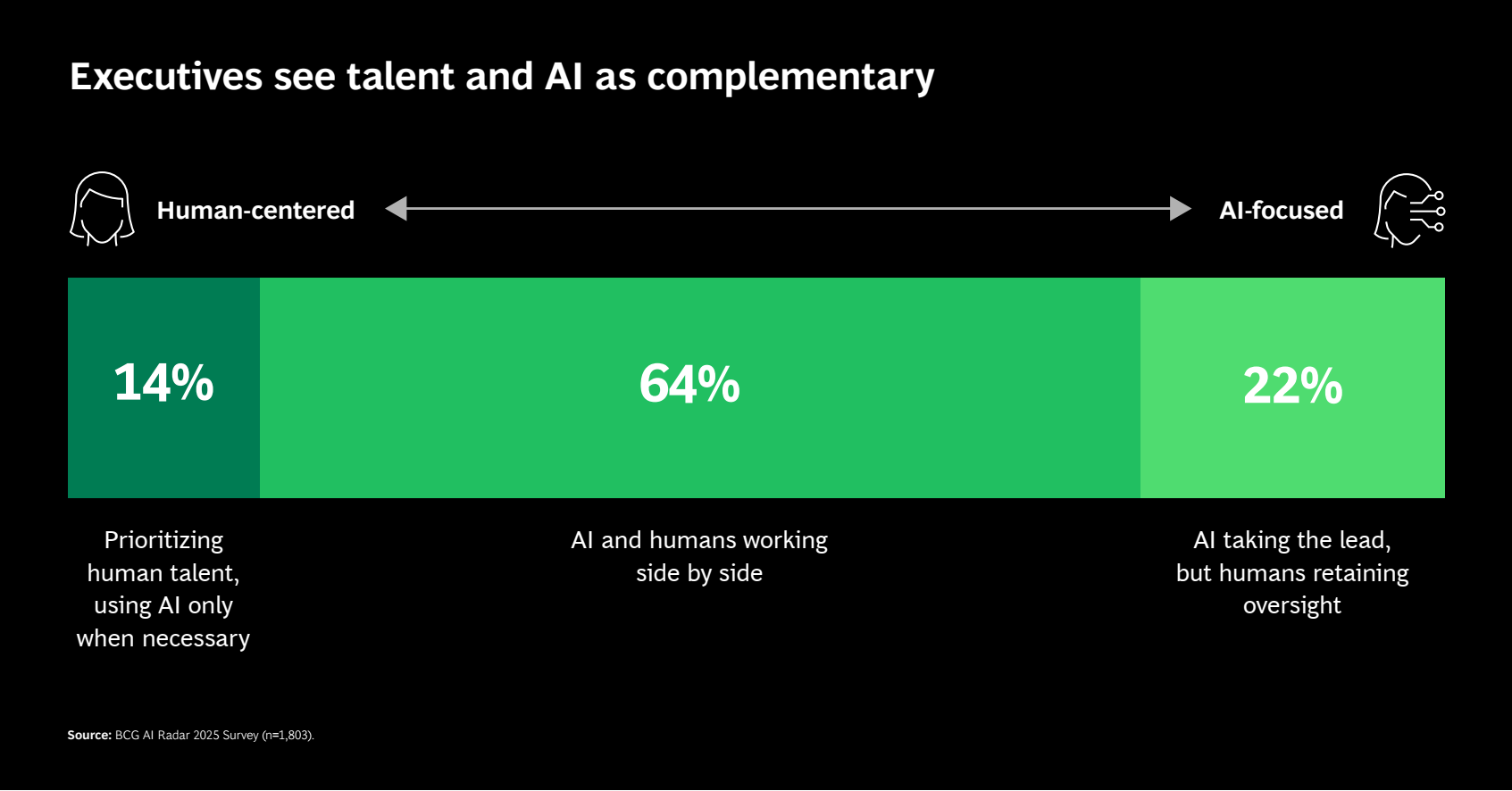 BCG๊ฐ ๋ฐํํ ์ต๊ทผ ์กฐ์ฌ์ ๋ฐ๋ฅด๋ฉด, ๊ฒฝ์์ง๋ค์ ์ธ์ฌ์ AI๋ฅผ ์ํธ ๋ณด์์ ๊ด๊ณ๋ก ์ธ์ํ๊ณ ์์ต๋๋ค.