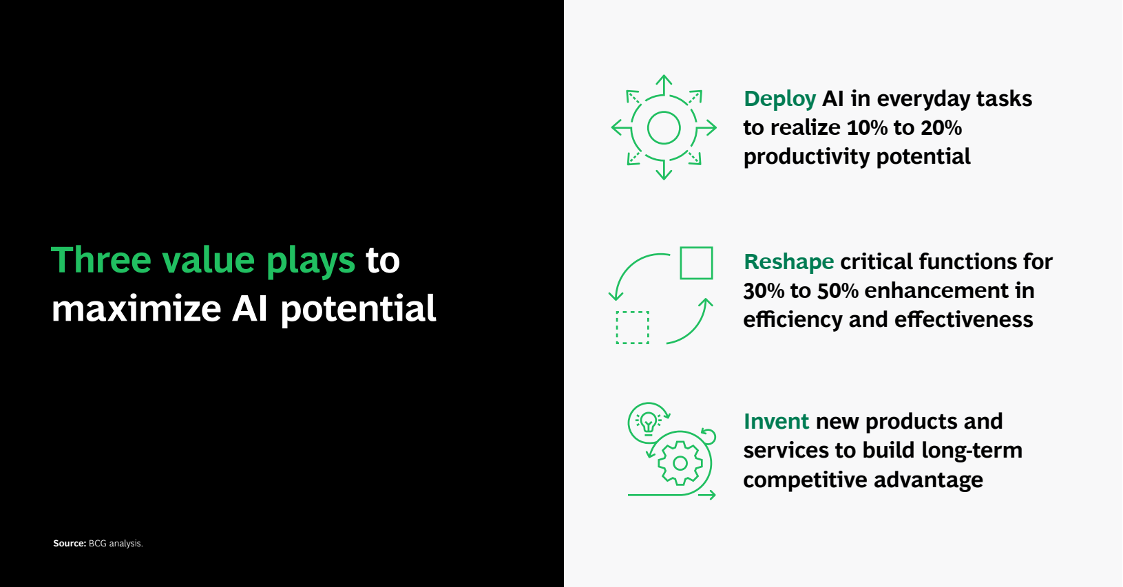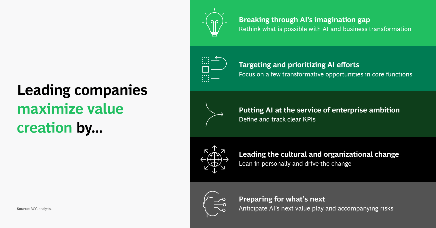BCG๋ AI ๊ฐ์น ์ฐฝ์ถ์ ์ธ ๊ฐ์ง ์์ค์ผ๋ก ๋ถ๋ฅํฉ๋๋ค.