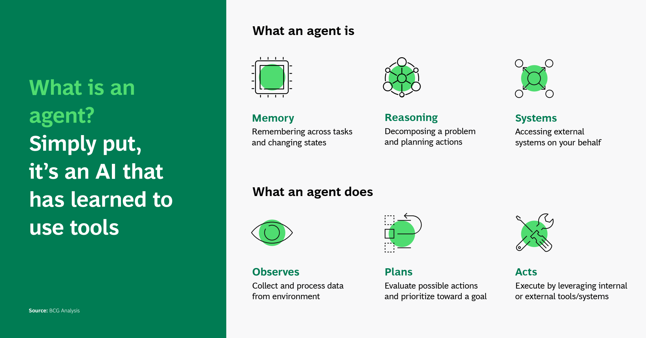 - Agent๊ฐ ์ด๋ฌํ ์ ํ์ ๊ฐ๋ฅํ๊ฒ ํ๋ ์ด์ ๋ ๋๊ตฌ ์ฌ์ฉ(Tool Use), ๋ฉ๋ชจ๋ฆฌ(Memory), ๊ณํ ์๋ฆฝ(Planning) ๋ฅ๋ ฅ์ ๊ฐ์ถ๊ณ ์์ด, ๋ณต์กํ ๋ค๋จ๊ณ ์์ ์ ์ฌ๋์ ์ง์์ ๊ฐ์ ์์ด ์ํํ ์ ์๊ธฐ ๋๋ฌธ์ ๋๋ค.